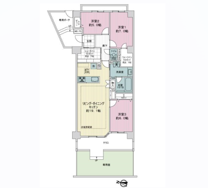 バルコニー面積専用庭 16.37㎡